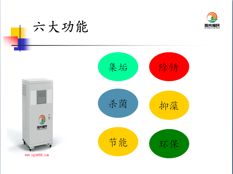 5,集垢:電集垢主機(jī)產(chǎn)生的電信號經(jīng)收集器對水體產(chǎn)生特殊電分解作用,形成特定磁、電場,促使鈣、鎂離子被收集器所吸引并在收集器外網(wǎng)形成結(jié)晶。有效地降低了水的電導(dǎo)率和硬度,減少換熱器表面結(jié)垢,保持換熱效果。
